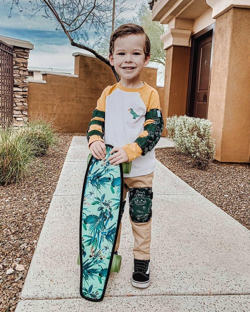 The fabric is soft and gentle for their skin, easy for your little to put on with distinct differences between knee pads + elbow pads, and so so so many patterns to choose from. - Britnightingale